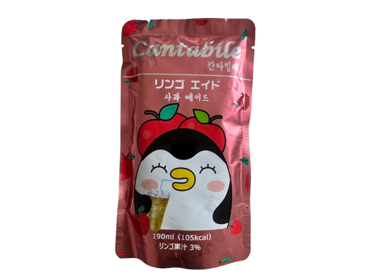 Cantabile Apple Ade er en koreansk drik i smart og bærbar pouch, der kombinerer ægte æblesaft med en let brus og sødme. Med sin søde, frugtige smag og praktiske emballage er den særligt populær blandt unge og studerende, der elsker koreanske trends og snacks på farten.