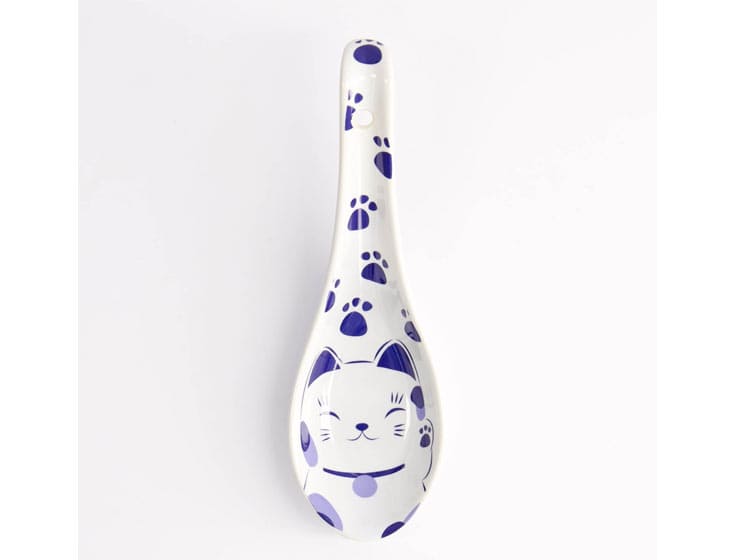 Designet er inspireret af den japanske Maneki-neko, kendt som “held og lykke-katten”. De søde poteaftryk langs skaftet giver ekstra charme, og porcelænsmaterialet gør skeen både holdbar og velegnet til varme retter. Den er designet med en afrundet bund og god dybde, så du nemt kan få hver eneste dråbe suppe med.