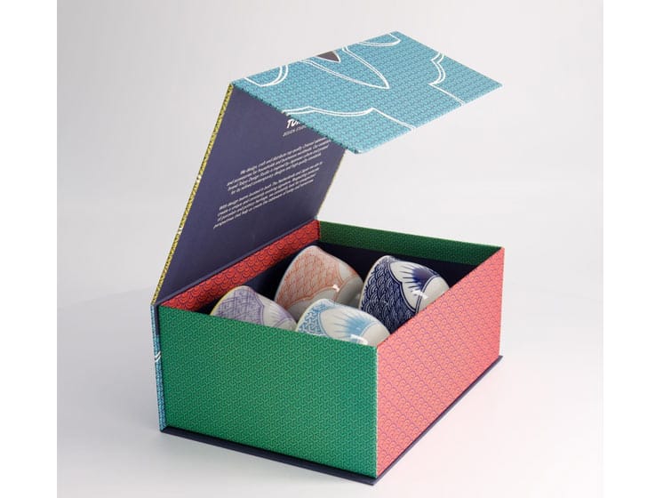 Designet er inspireret af japanske mønstre og klassiske blomsterornamenter, som ofte ses i tekstiler, porcelæn og kunsthåndværk. Lily-mønstrene bærer præg af japansk minimalisme kombineret med tydelige grafiske linjer, hvilket skaber både ro og variation i udtrykket. Gaveæsken følger samme stilretning og er udsmykket med farverige mønsterflader.