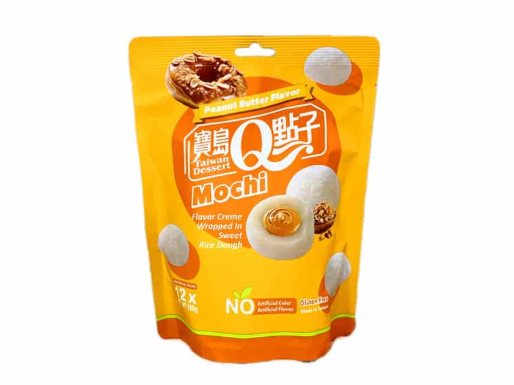 Peanut Butter Flavor Mochi er en blød og chewy japansk riskage fyldt med cremet jordnøddesmør. Den klassiske mochi-tekstur kombineres her med den rige, nøddeagtige smag af peanut butter, hvilket giver en unik fusion mellem asiatisk tradition og vestlig favorit.