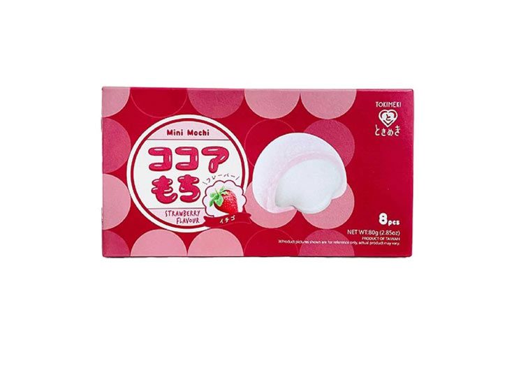 TokiMeki mini strawberry mochi har en sød og delikat smag af jordbær, der vil tilfredsstille dine smagsløg. Den cremede fyldning inde i de små risboller er perfekt afbalanceret med risdejens bløde konsistens.