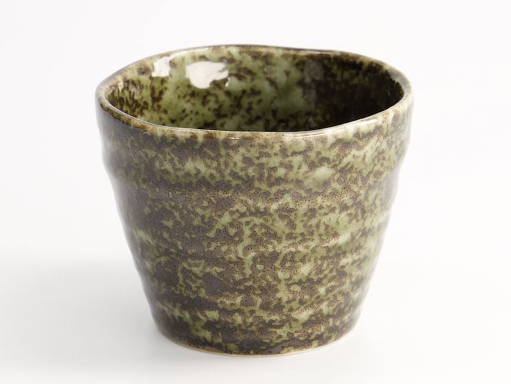 Shinryoku Green Soba kop 8.6×6.9cm 210ml kombinerer et naturinspireret farveudtryk med et rustikt, håndværkspræget design. Den levende grønne glasur og praktiske størrelse gør koppen velegnet til både soba-servering og småretter i et autentisk bordmiljø.