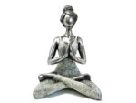 Elegant yogaskulptur i sølv- og hvidtoner, håndlavet i Indonesien. En rolig og stilfuld figur, der symboliserer balance, nærvær og indre harmoni – perfekt som gave eller mindful boligdekoration.